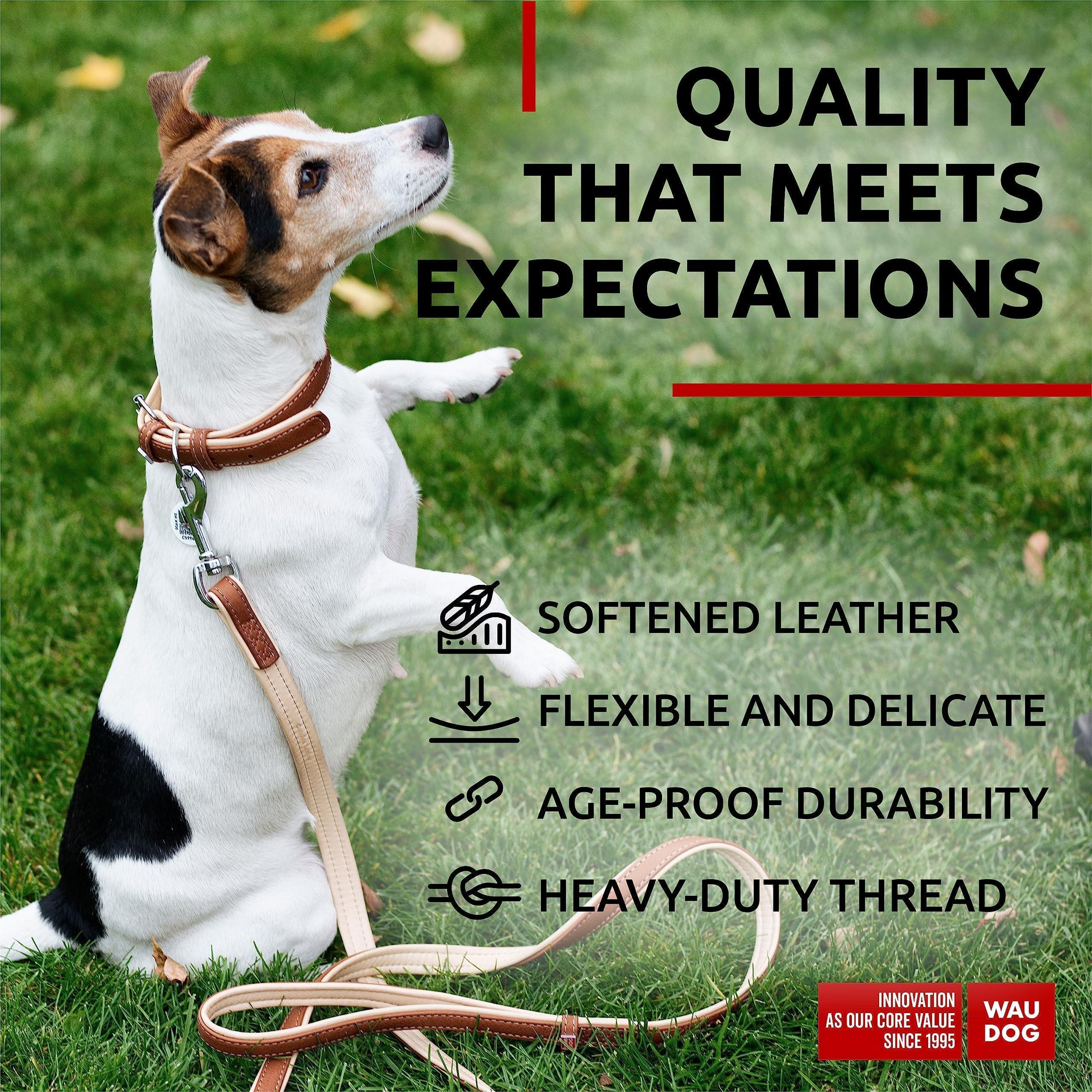 2.GENUINE LEATHERGENUINE LEATHER Our pets deserve the finest leather! We use high-quality, soft, smooth, and extremely durable leather for our Soft collar. It will look like new for a very long time bringing you joy every day.