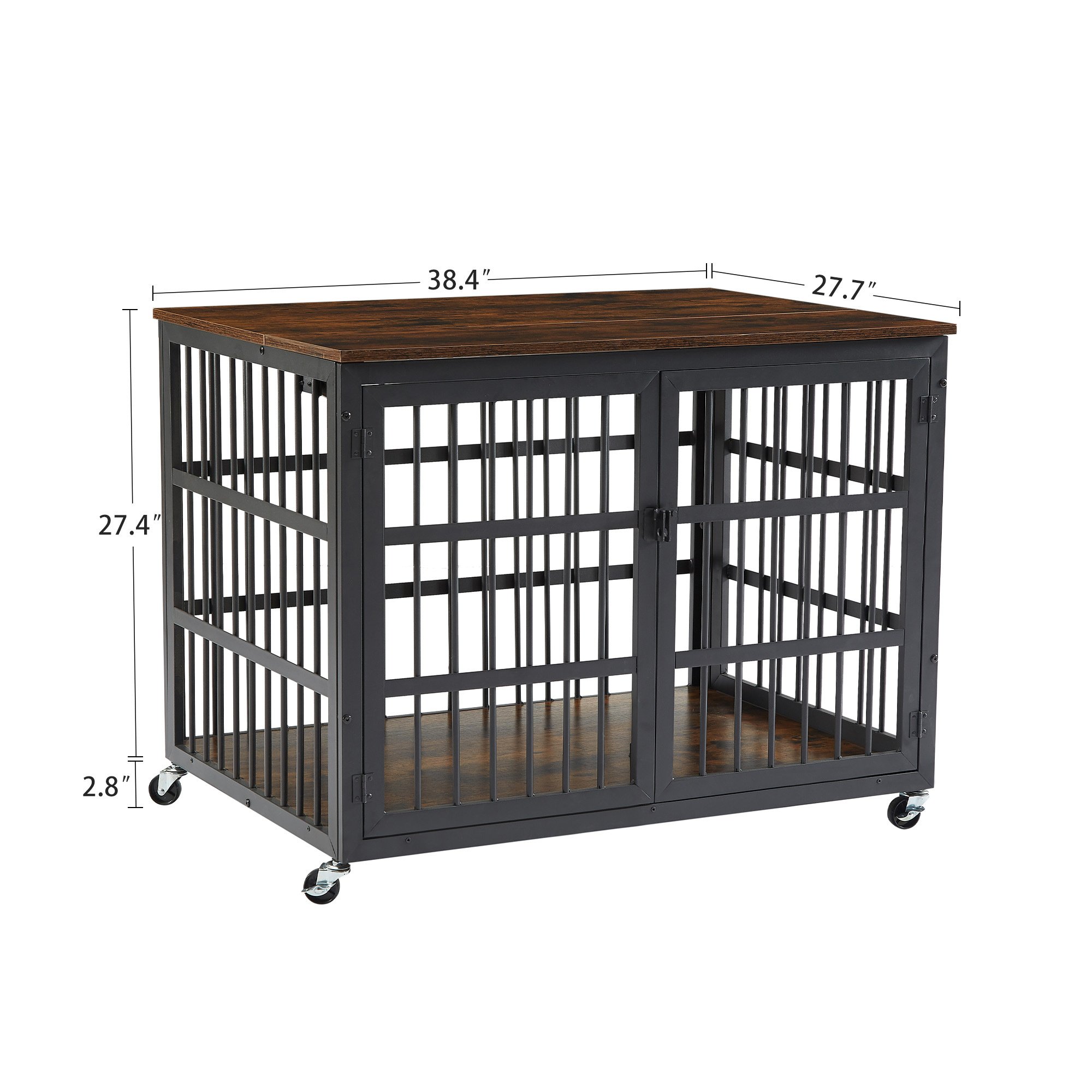 Home > Furniture style dog crate wrought iron frame door with side openings, Grey, 38.4''W x 27.7''D x 30.2''H.