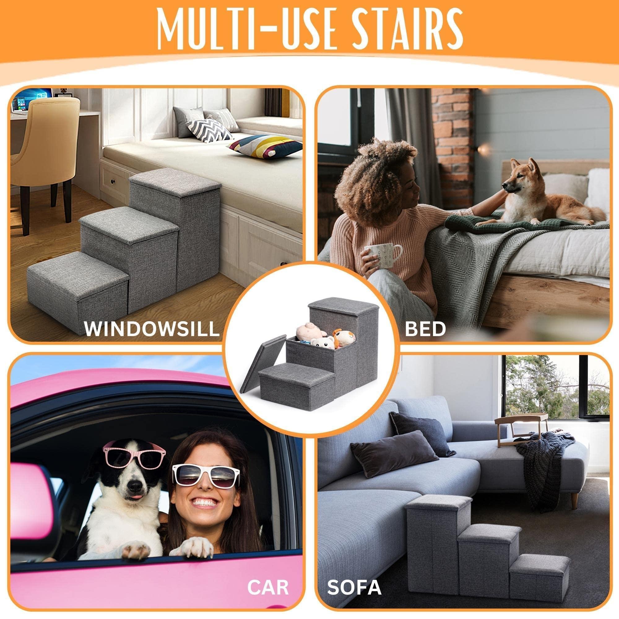 Home > Gray Dog Stairs for High Beds or CouchFoldable Dog Steps With Storage Pet Steps for Small Dogs Medium Dogs Puppy Stairs