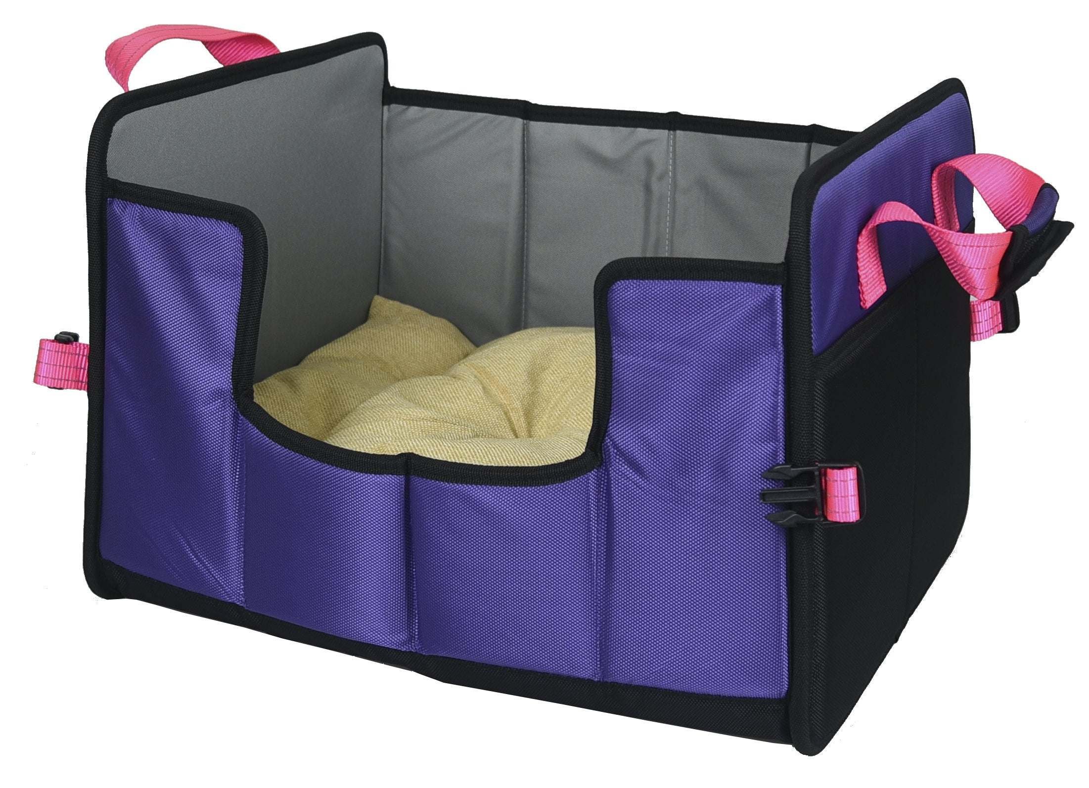 1.The Travel-Nest Pet Bed collapses and folds and can be carried around anywhere through the above-top built-in Nylon handle