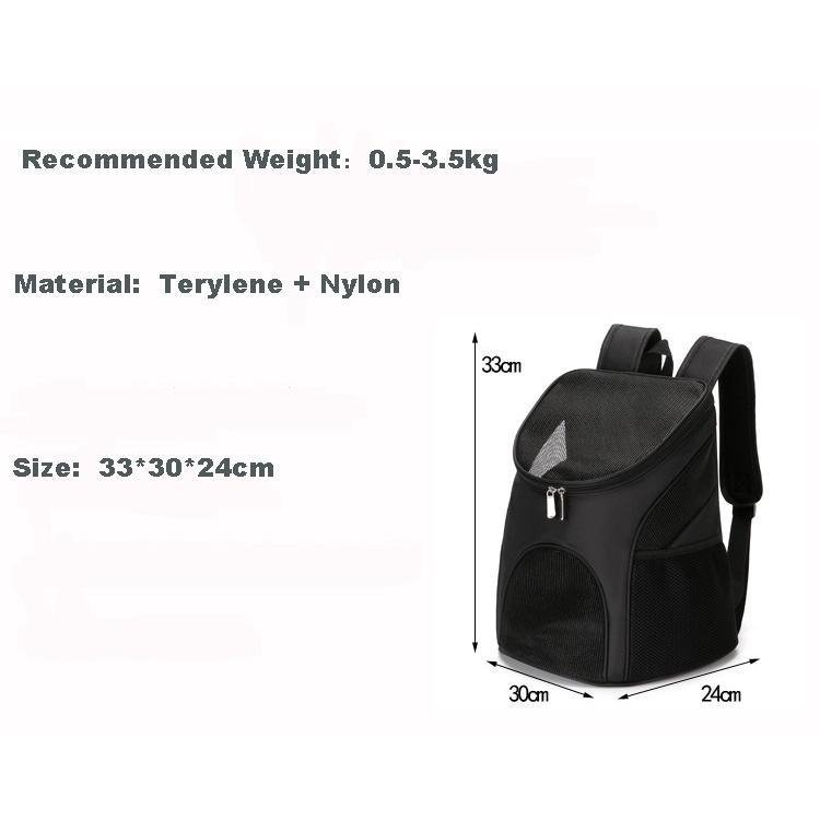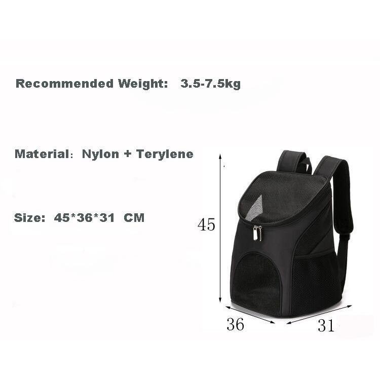 Item Type : BackpacksOrigin : CN(Origin)Fitable Weight : 0.5-7.5kgType : DogsMaterial : nylonStyle : ClassicsApplicable Dog Breed : UniversalSeason : All seasonsPattern : SolidFeature : BreathableSize: M 30x24x33cm L 45x36x31cm